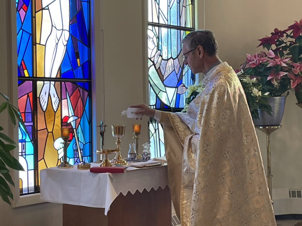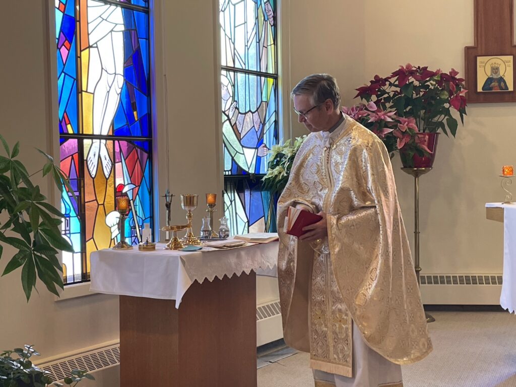 On Saturday, February 20, 2021, Bishop David Motiuk visited the Sisters Servants of Mary Immaculate community in Mundare, Alberta, during which time blessed a new chalice, diskos and star. These beautiful Liturgical Vessels were received from the Knights of Columbus – St. Stephen Assembly #2522 from Calgary.