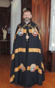 Like Blessed Josaphata, who was known to create and adapt patterns for habits and vestments, Sister Anne Marie also was an innovative designer. Her crowning achievement was the eight-segmented collapsible bishop’s mitre, used by many Ukrainian Catholic bishops and other Byzantine bishops today. She was also honoured to make an episcopal mantle for His Beatitude Sviatoslav Shevchuk, during his Patriarchal Visitation in 2014. Her skill was recognized in wider circles; in 2013, she was invited to display sample vestment sets in “Sacred Stitches”, a multi-faith exhibit of ecclesiastical embroideries and textile art, hosted by the Anglican Church in Toronto.